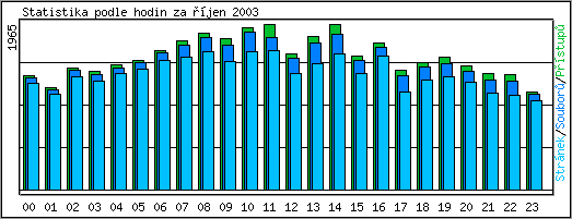 | Hodina | Přístupů | Souborů | Stránek | Návštěv | KBytů |